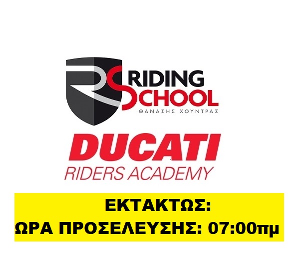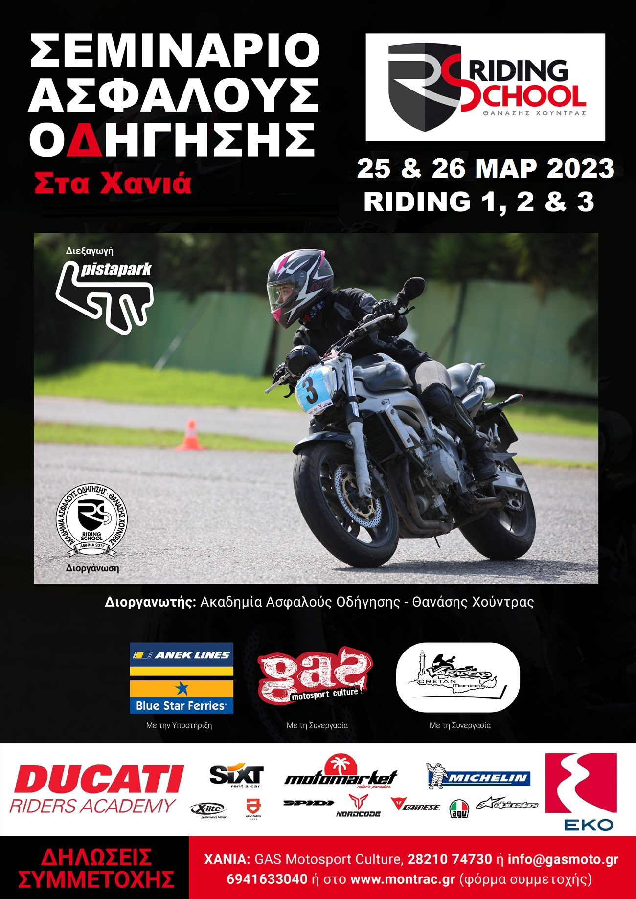 Σάββατο 18 Ιανουαρίου 2025: Ημερίδα Riding School 1 & 2 στην Pistapark στο Βαρύπετρο, Πληροφορίες & κρατήσεις : www.motrac.gr, 6941633040 και στο κατάστημα Gas Motosport Culture, Κισσάμου 98, Χανιά, τηλ. 28210 74730.